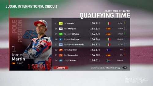 Pole position yang diraih merupakan yang kelima bagi pebalap Spanyol tersebut di ajang MotoGP. MotoGP Qatar merupakan MotoGP 2022.