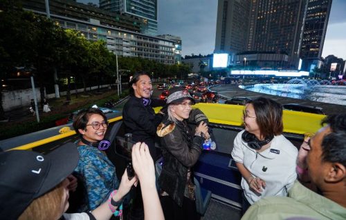 Jakartakita.comWakil Menteri Ekonomi Kreatif (Wamen Ekraf) Irene Umar mendampingi musisi legendaris asal Jepang, Hideto Takarai (HYDE), dalam kegiatan tur keliling Jakarta menggunakan bus tingkat Jakarta City Tour by JakLingko. Kegiatan ini menjadi bagian dari rangkaian promosi menjelang konser HYDE [INSIDE] LIVE 2025 WORLD TOUR yang akan digelar di Tennis Indoor Senayan, Jakarta pada Sabtu, 1 November 2025.